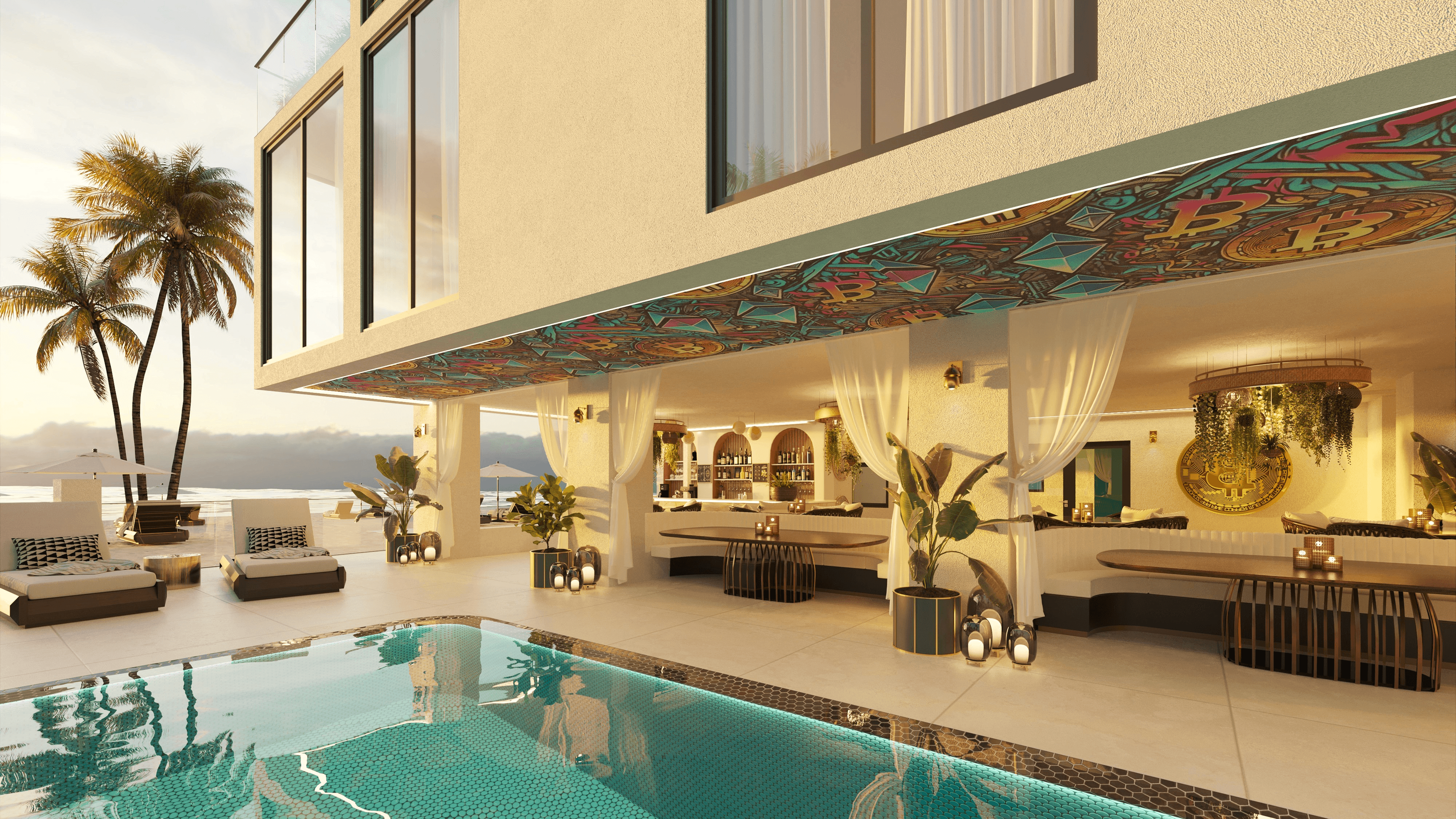 The Bitcoin Hotel & Club is a one-of-a-kind destination where anyone can stay and immerse themselves in the energy of the next evolution of tech, capital, art, and society. At its core, it offers a members only social club, a curated collision space that is half physical sanctuary and half digital twin, where in-person connection and online collaboration merge seamlessly with on-chain identity. Guests enjoy the vibrant hotel experience while members unlock deeper layers of community, exclusivity, and influence.